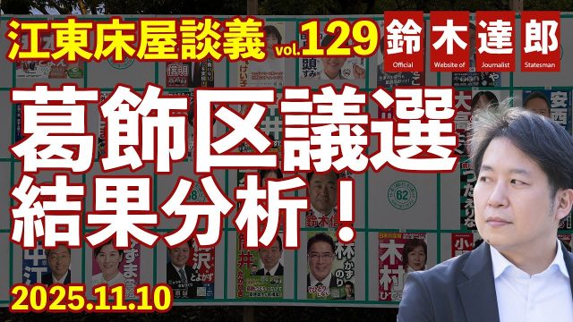 江東床屋談義129 葛飾区議選挙 結果を分析! 鈴木達郎 X→ https://twitter.com/apflsuzuki 江東区疑惑まとめ→ https://youtu.be/V22pN6j4s4w?si=J5r7kjdQxBmpaNO3 江東床屋談義は、無責任に外野から、江東区のみならずいろいろな政治の話題をかたるシリーズです(笑) コメント議論大歓迎ですが、失礼だったり慇懃無礼な感じのコメントは消していきます。 #江東区 #東京15区 #江東床屋談義