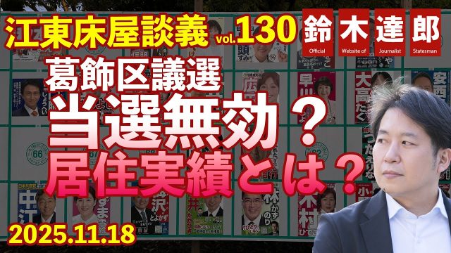 江東床屋談義130 葛飾区議選 当選無効!?居住実績とは! 鈴木達郎 X→ https://twitter.com/apflsuzuki 江東区疑惑まとめ→ https://youtu.be/V22pN6j4s4w?si=J5r7kjdQxBmpaNO3 江東床屋談義は、無責任に外野から、江東区のみならずいろいろな政治の話題をかたるシリーズです(笑) コメント議論大歓迎ですが、失礼だったり慇懃無礼な感じのコメントは消していきます。 #江東区 #東京15区 #江東床屋談義